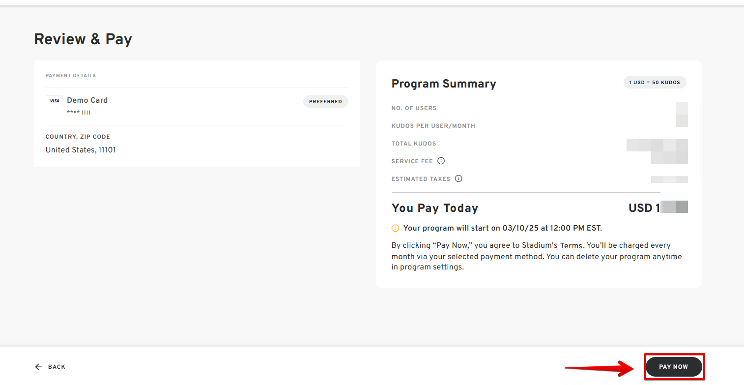 - Review the program details, then click "Pay Now."
