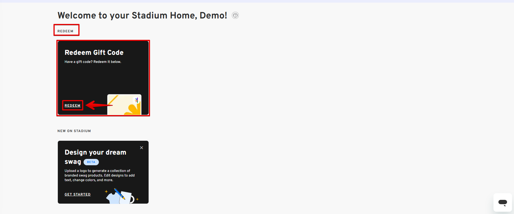 Select the REDEEM button from the tile Redeem Gift Code.