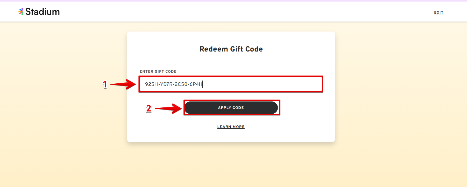 - On the next page, enter the gift code.