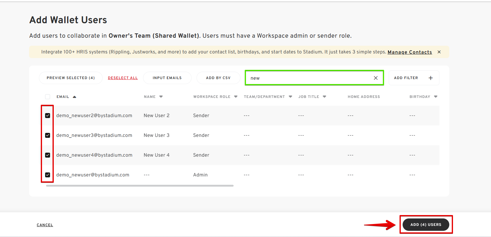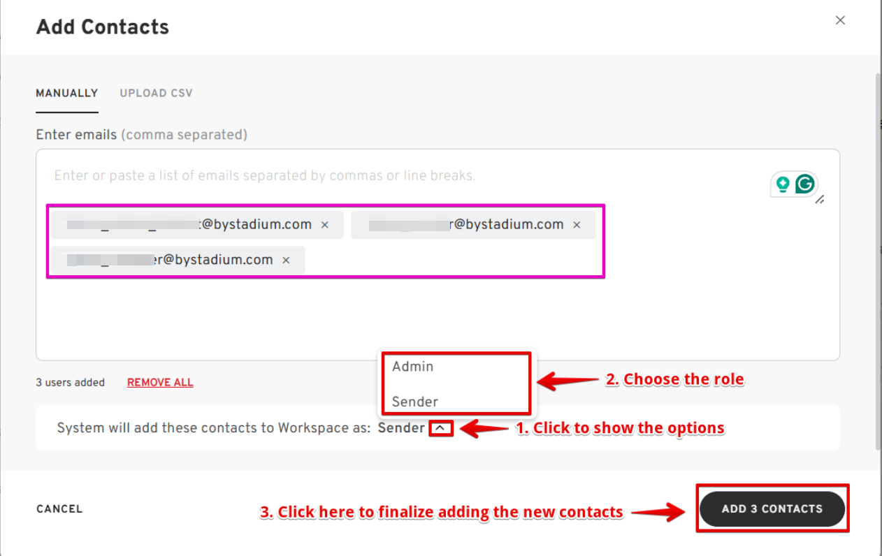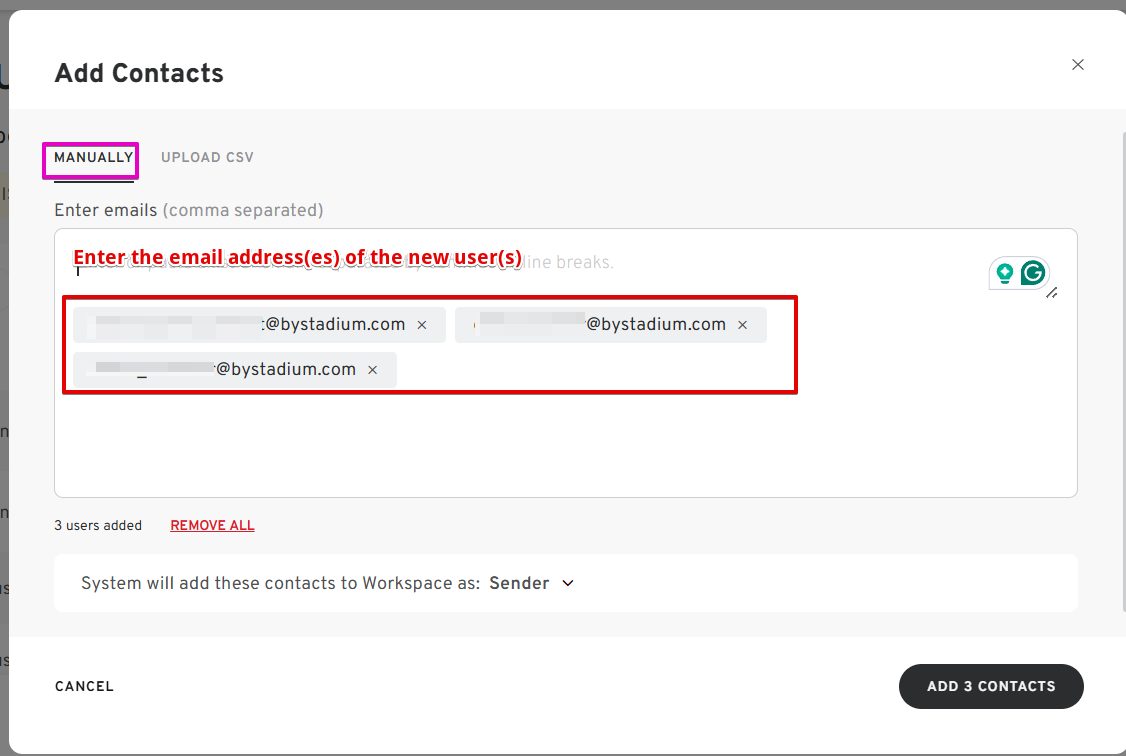 - Enter the emails of the new users.