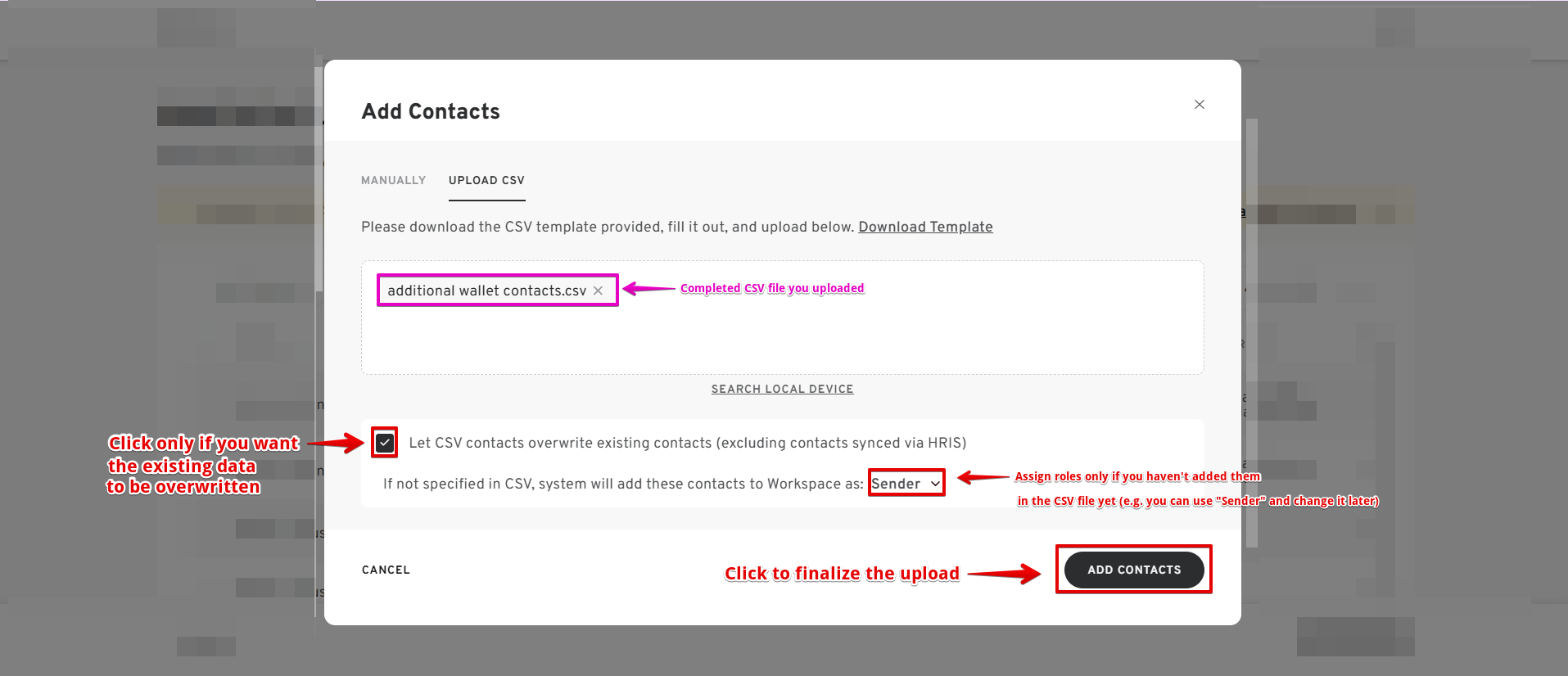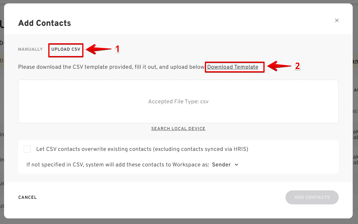 Option 3: Adding Contacts via CSV Upload