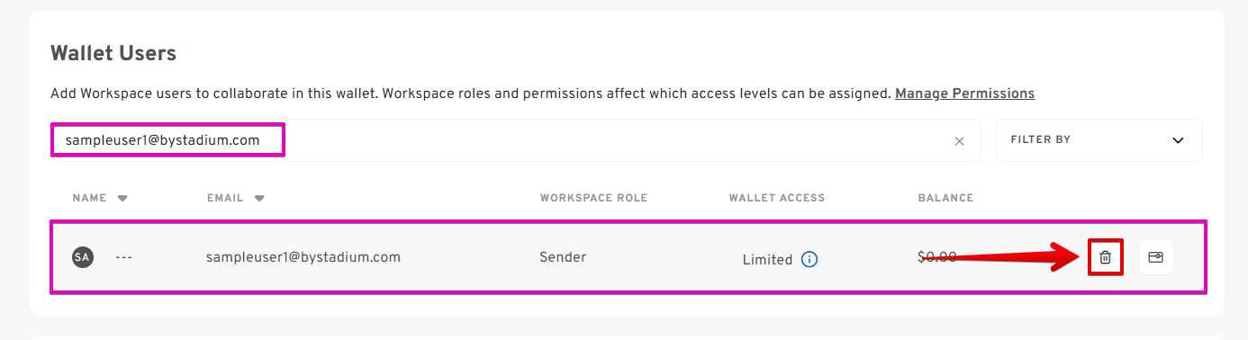 - Only Wallet owners and Wallet admins can remove users from an Additional Wallet