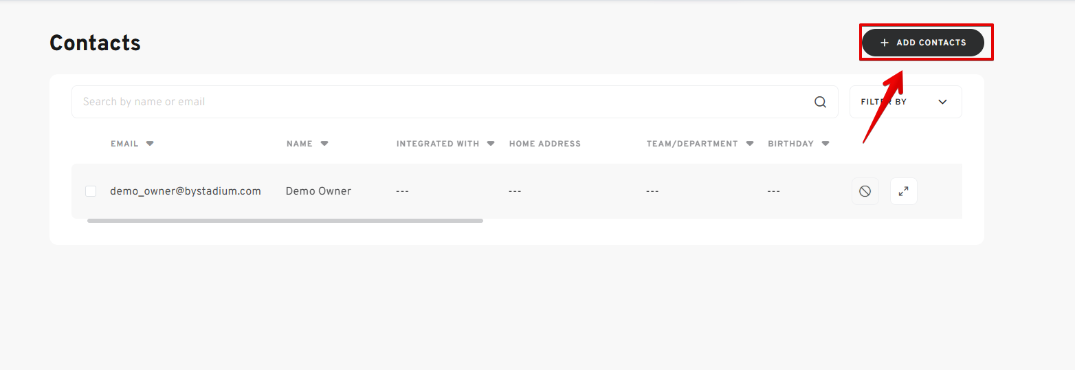 - Click on the ADD CONTACTS button to initiate the process