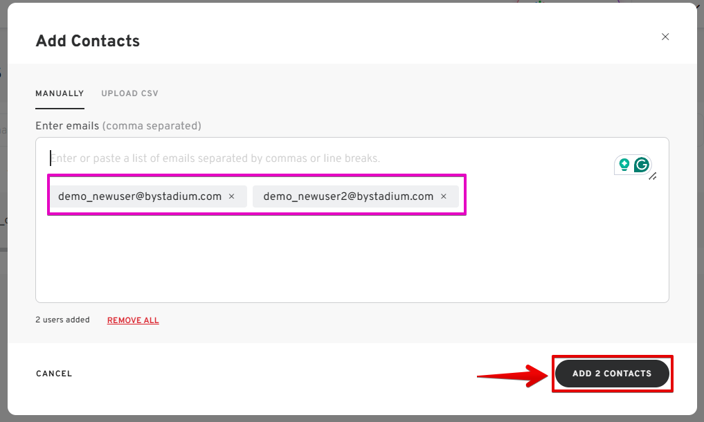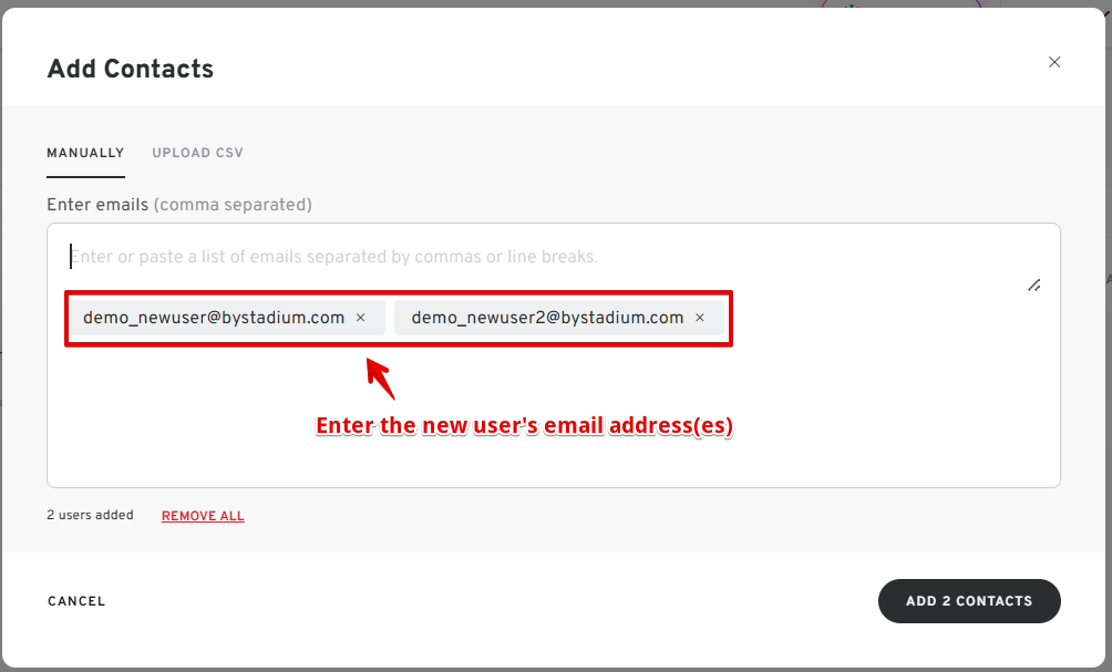 - Enter the emails of the new users.