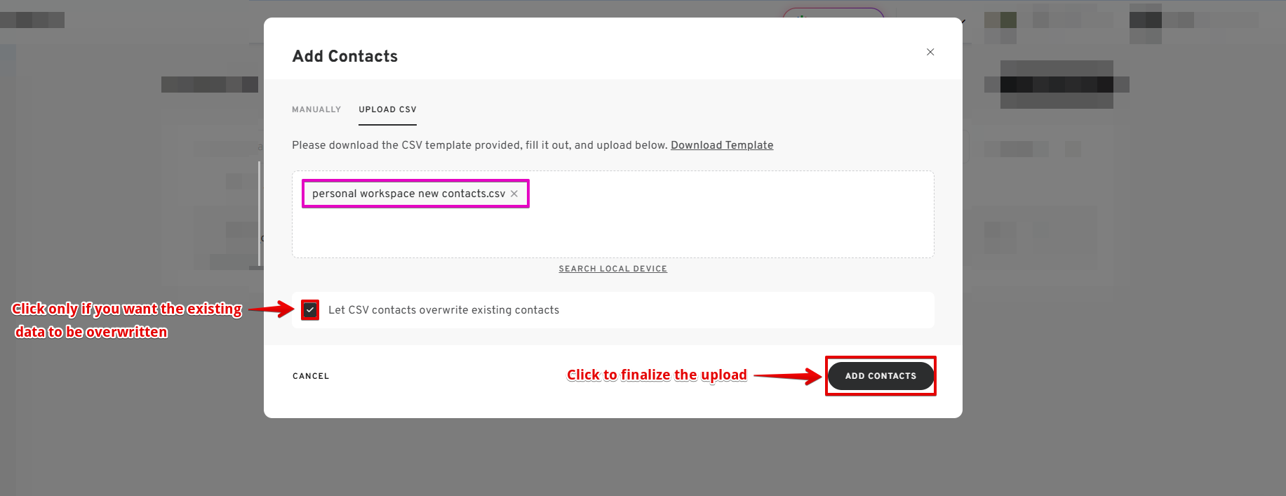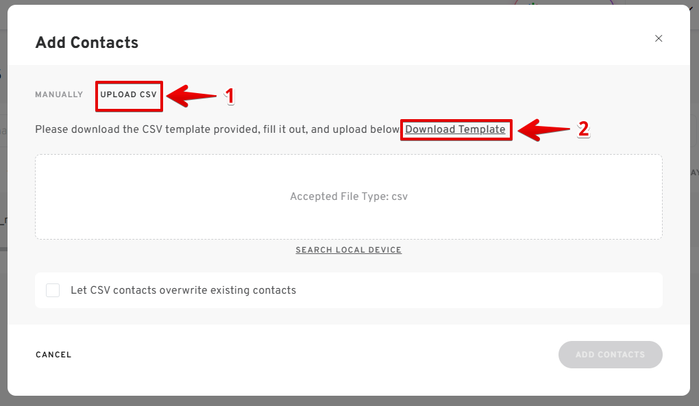 Option 2: Adding Contacts via CSV Upload