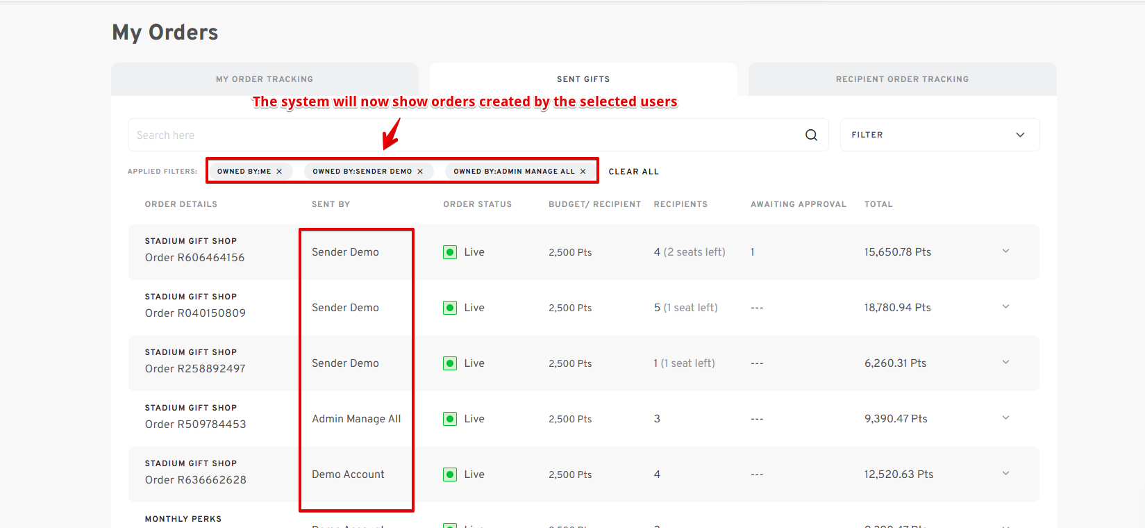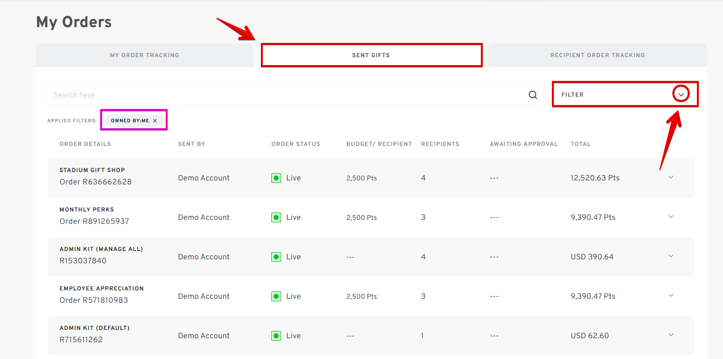 Looking for how to filter sent gifts by sender in the My Orders page, view orders by user, or track gift orders created by specific users in your company Workspace? π This guide shows you exactly how to use the Owned By filter to quickly find and manage sent gifts by sender in your Orders dashboard.