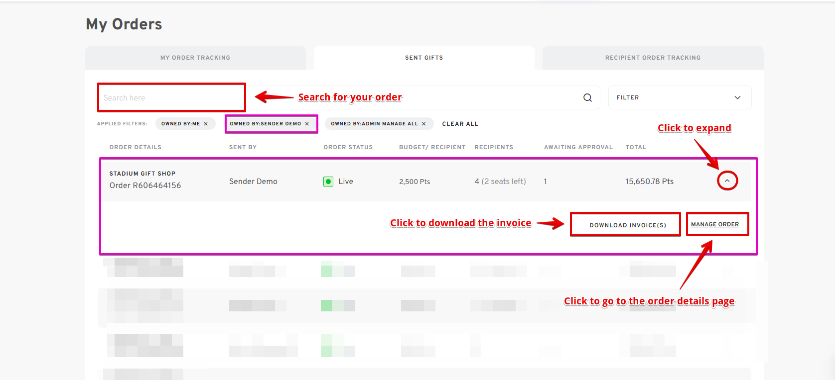 - How to Filter Sent Gifts by Sender in the My Orders Page