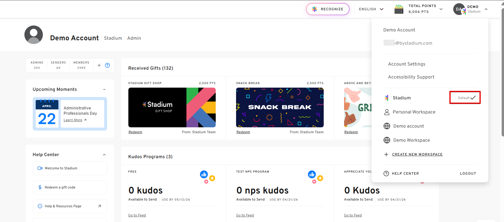 - If needed, you can change your default Workspace anytime from your Account Settings.