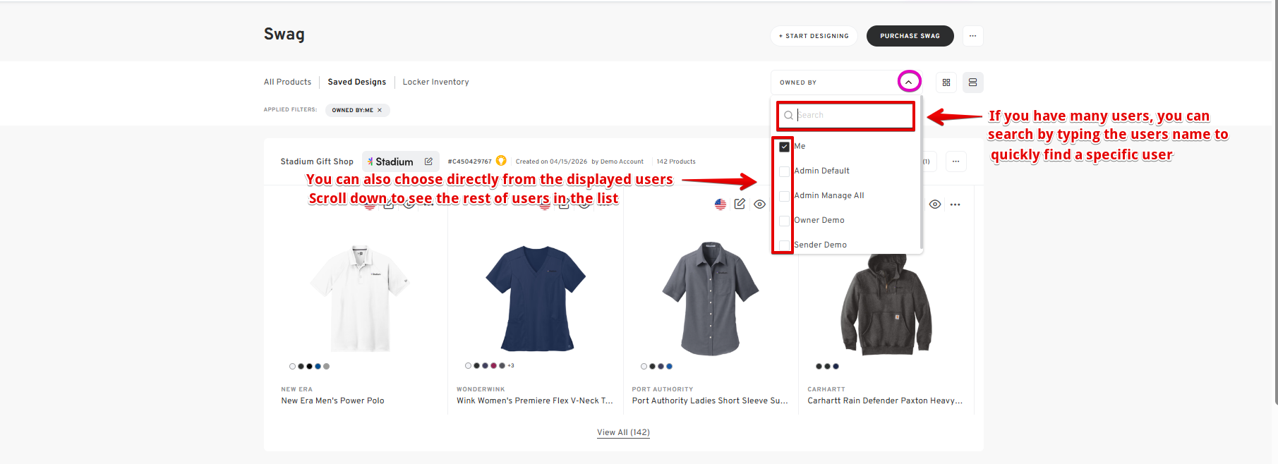 Here is a Step-By-Step Guide on How To Filter Swag Designs by Owner