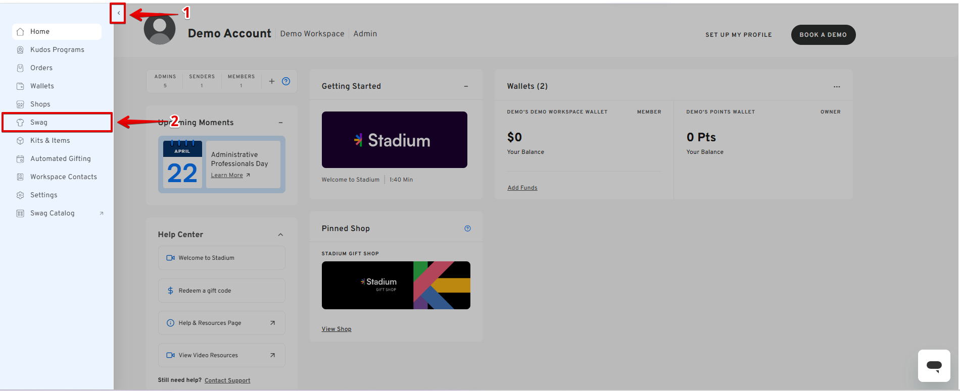 - In the sidebar menu, locate and click on "Swag" to access your swag page.