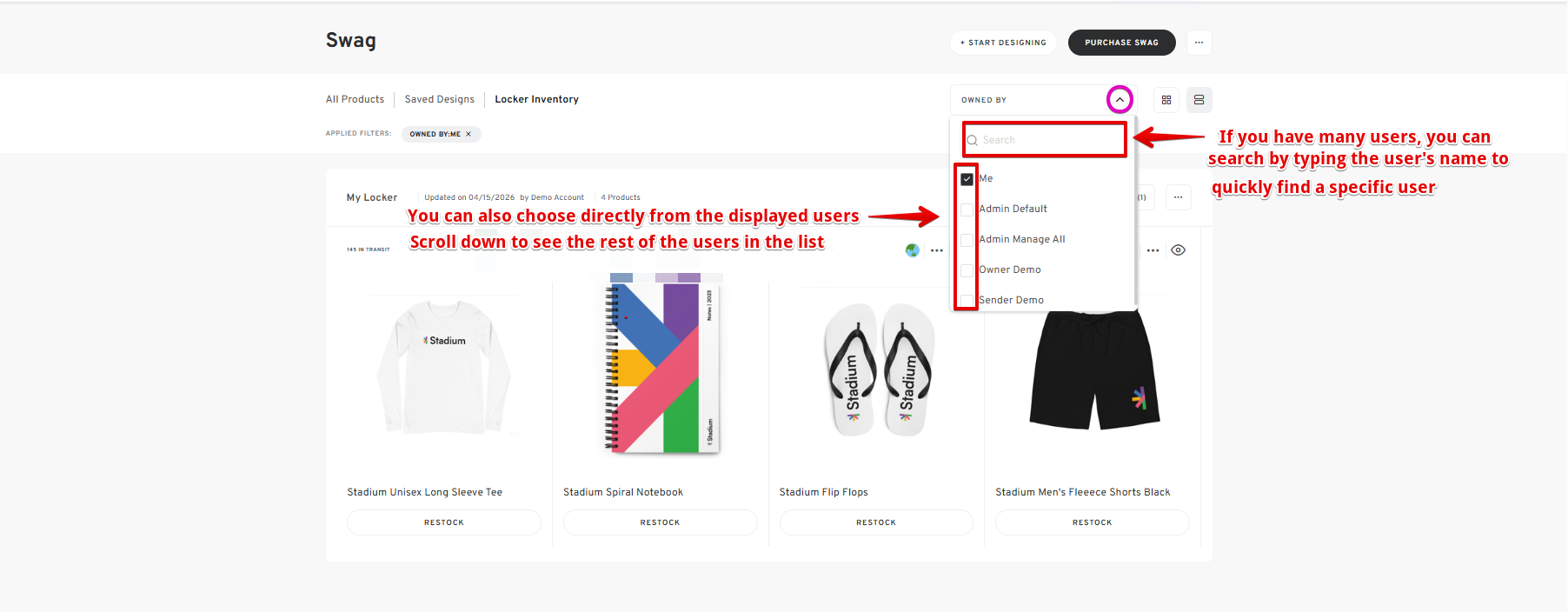 Here is a Step-By-Step Guide on How To Filter Swag Lockers by Owner